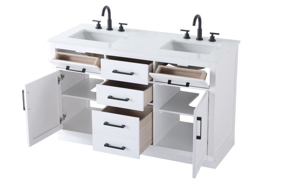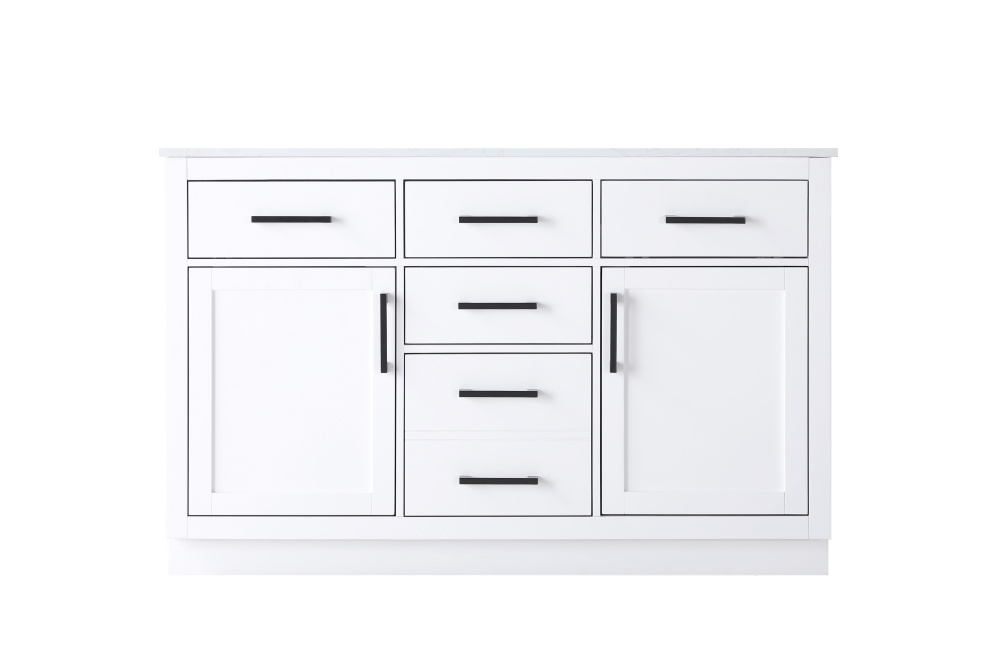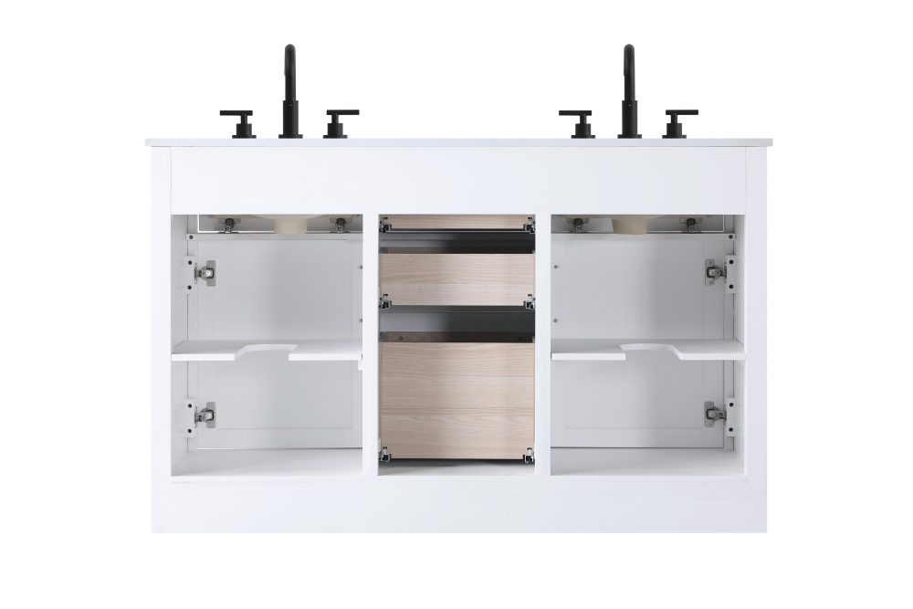 Spacious bottom deep drawers provide extra room for storing larger items like towels or cleaning supplies.