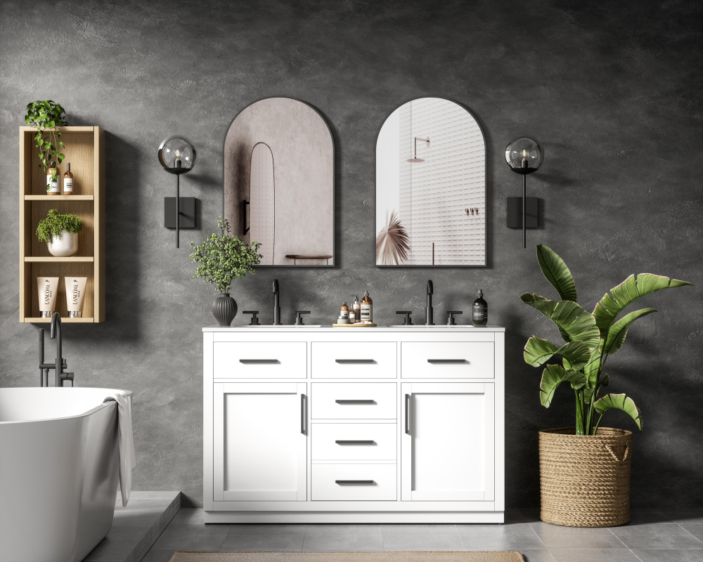 Perfectly suited for transitional and contemporary bathroom designs, this vanity seamlessly blends rustic and modern elements while being crafted from solid wood and MDF for exceptional durability and strength.