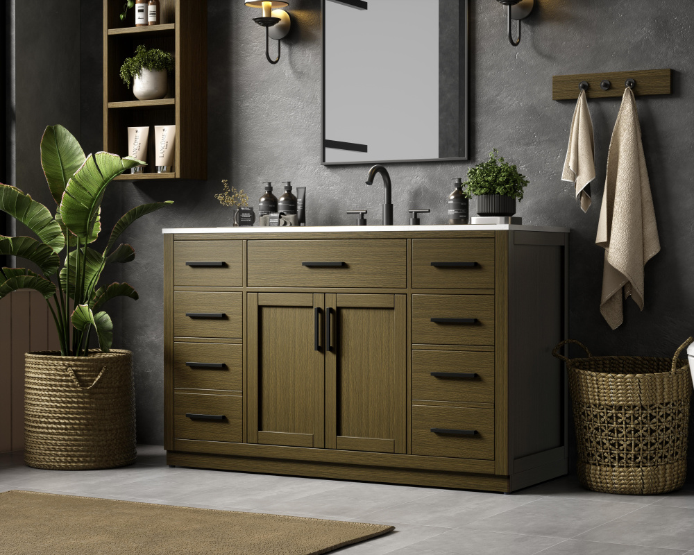 Perfectly suited for transitional and contemporary bathroom designs, this vanity seamlessly blends rustic and modern elements while being crafted from solid wood and MDF for exceptional durability and strength.