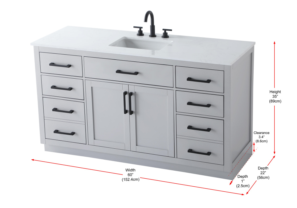 Distance Between Shelf and Cabinet Sink: