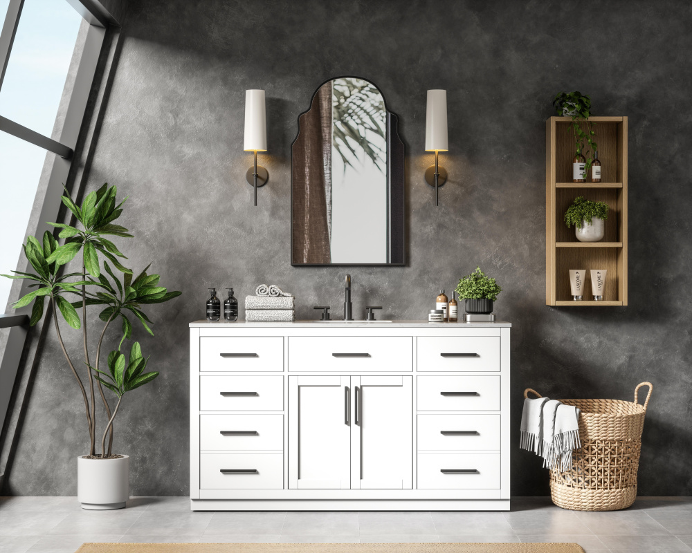 Perfectly suited for transitional and contemporary bathroom designs, this vanity seamlessly blends rustic and modern elements while being crafted from solid wood and MDF for exceptional durability and strength.