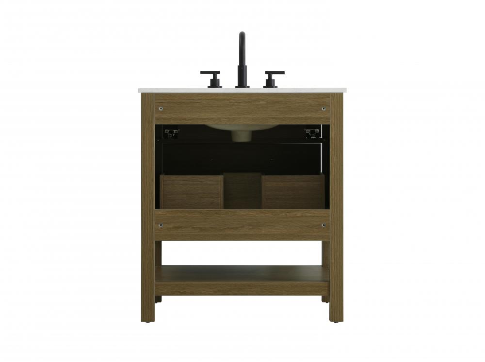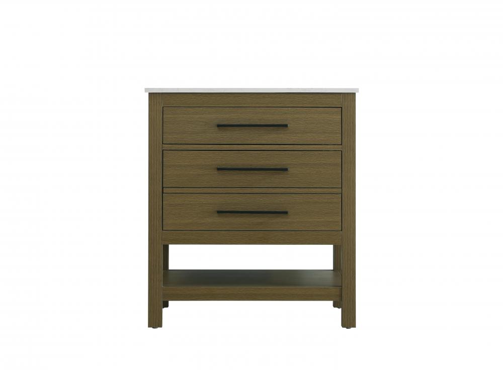 Elevate your bathroom design with this versatile and beautifully crafted bathroom vanity cabinet. The engineered marble top features striking veining, adding a luxurious focal point to your space. Built from premium solid wood and MDF, it ensures long-lasting durability and strength. The porcelain sink, complete with a concealed overflow, offers a seamless and refined finish.Available in four stunning finishes—Chestnut Brown, Honey Brown, Mocha Brown, and White—this vanity suits any interior style. Designed with convenience in mind, it features soft-closing drawers with modern handles and a tip-out drawer for easy access to small essentials, keeping your space tidy. The bottom deep drawer mimics the appearance of two separate drawers, providing ample storage for larger items, while the open shelf at the base offers additional storage space for towels or decor.Fully assembled for your convenience, it includes foot levelers for stability on any surface. For a complete look, pair it with an optional matching backsplash, sold separately. UPC certified for quality assurance, this vanity is the perfect combination of functionality, style, and ease of use.