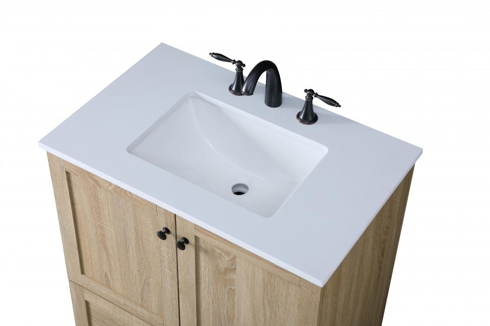 Elevate your bathroom with our sophisticated vanity featuring an engineered marble top in timeless ivory white. Designed for seamless elegance, it comes equipped with an undermount porcelain sink. Organizational bliss awaits with one drawer and a cabinet, all boasting smooth soft-close glides and hinges. Completing the picture of refinement, our vanity is tastefully adorned with sleek black hardware. Transform your space with this marriage of style and functionality.