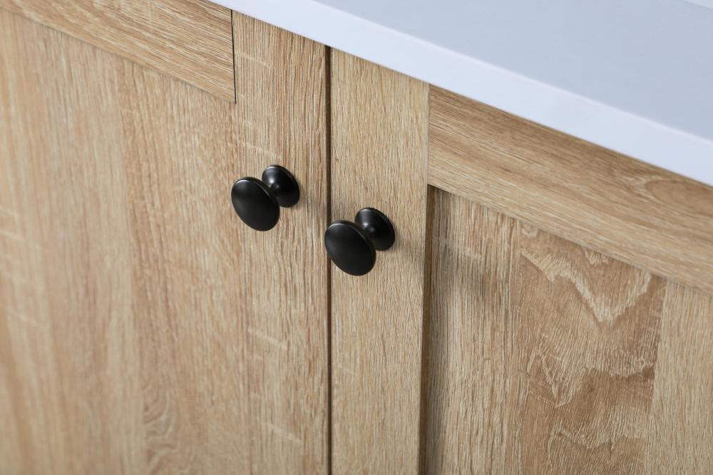 Indulge in the details with high-quality knobs and pulls adorning the drawers and doors, adding a touch of sophistication and functionality to your vanity.