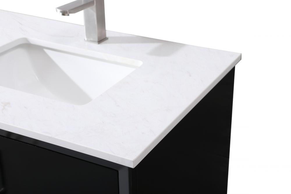 Step into a realm of modern luxury with our freestanding bathroom vanity, featuring a sleek and contemporary boxy design that sets new standards for aesthetics. The engineered marble countertop, with its crisp 0.75-inch straight edge, not only introduces sophistication but also ensures enduring durability. Convenience takes center stage with the undermount porcelain sinks, measuring 15.35 inches long, 11 inches wide, and 7 inches deep, complemented by a single predrilled faucet hole for seamless installation. Experience the art of organization through soft-closing drawers and doors adorned with high-quality bar pulls, showcasing meticulous craftsmanship in the precision of butt joint drawers. The vanity, crafted from resilient MDF material, combines elegance with durability, supported by solid wood legs that provide stability and a touch of natural warmth. Elevate your bathroom with this distinctive piece, where the fusion of form and function creates a harmonious dance of modern sophistication, redefining your daily routine with a statement in style and practicality.