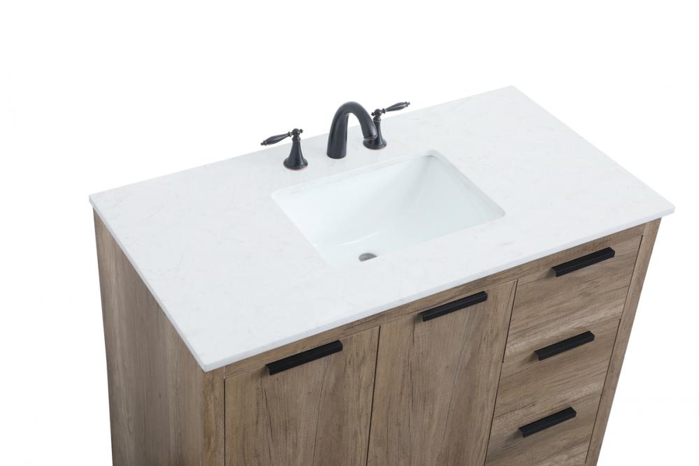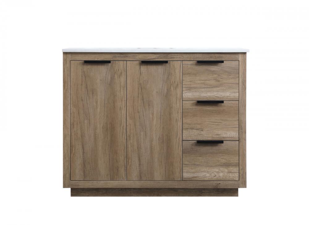 Upgrade your bathroom effortlessly with our stylish 42-inch vanity, showcasing an engineered marble top with a chic straight edge cut. The combination of three functional soft-close drawer and a convenient cabinet offers a perfect balance of design elegance and versatile storage. With an undermount porcelain sink, this vanity seamlessly blends timeless elegance with practical functionality. Adorned with sleek pulls, it adds a modern touch, enhancing the overall aesthetic. With three pre-drilled holes, it allows you to personalize your bathroom by choosing the perfect widespread faucet. Redefine your bathroom experience with this compact yet impactful vanity that optimizes space without compromising style.