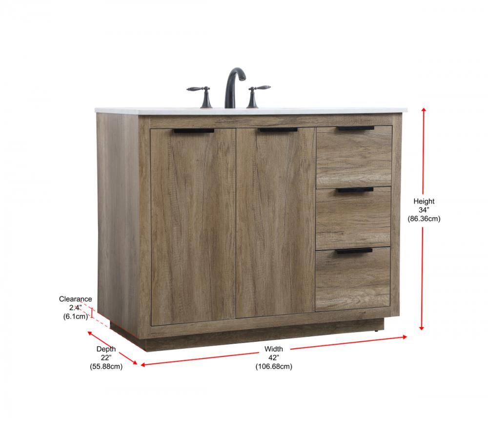 Meticulously designed, our vanity spans an impressive 42 inches in length, offering a spacious and stylish solution for your bathroom needs, combining ample storage with contemporary design.