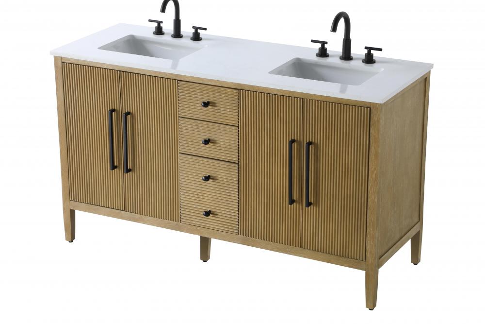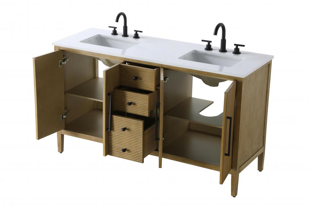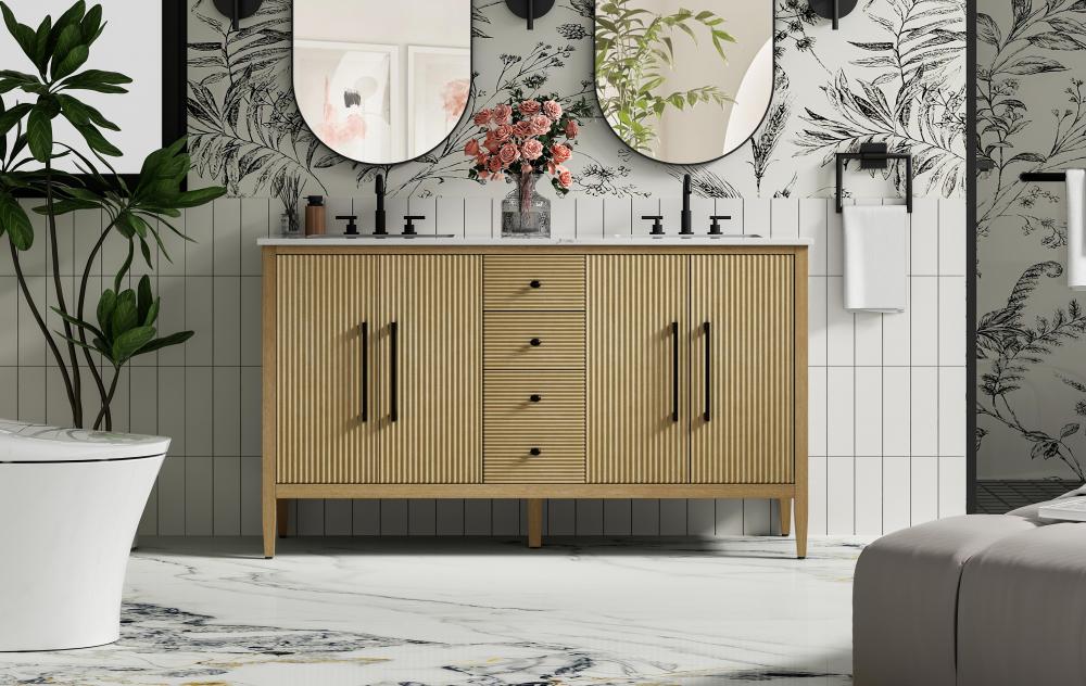 Designed with transitional elegance in mind, this bathroom vanity seamlessly blends traditional elements with modern functionality. Available in five stunning finishes, from the clean sophistication of Crisp White to the natural warmth of Honey Oak, the fluted door and drawer panels add subtle texture and charm. The white engineered marble countertop with natural veining exudes luxury, while the soft-closing doors and drawers with sleek black metal pulls offer a quiet, refined experience. Practicality is never compromised, with features like the U-shaped shelf for plumbing, deeper bottom drawer for ample storage, and pre-drilled faucet holes for easy customization. Whether your style leans modern or classic, this vanity is the perfect balance of beauty and function, appealing to customers with a taste for quality and style.
