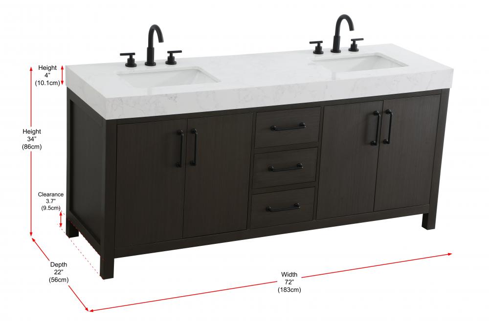 Vanity Cabinet 4DR 3DW 72"W x 22"D x 34"H Mocha Brown