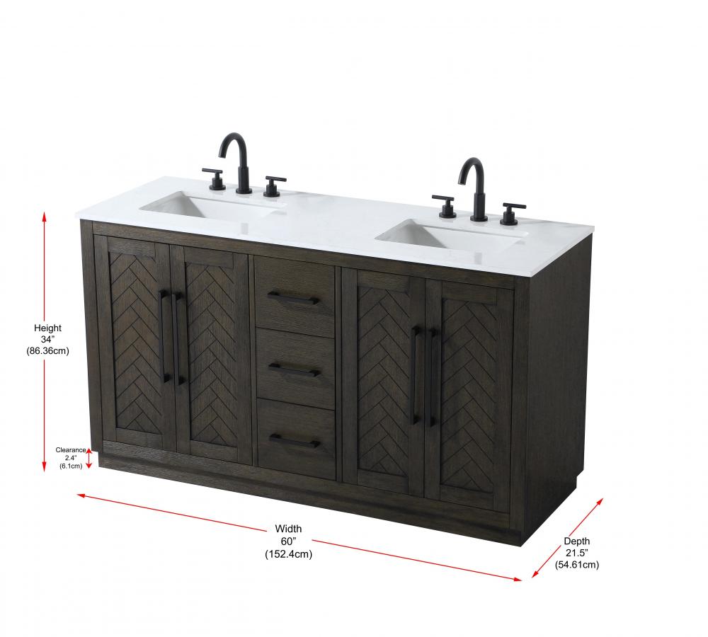 Vanity Cabinet 4Dr 3Dw W60"xD21.5"xH34" Chocolate Oak