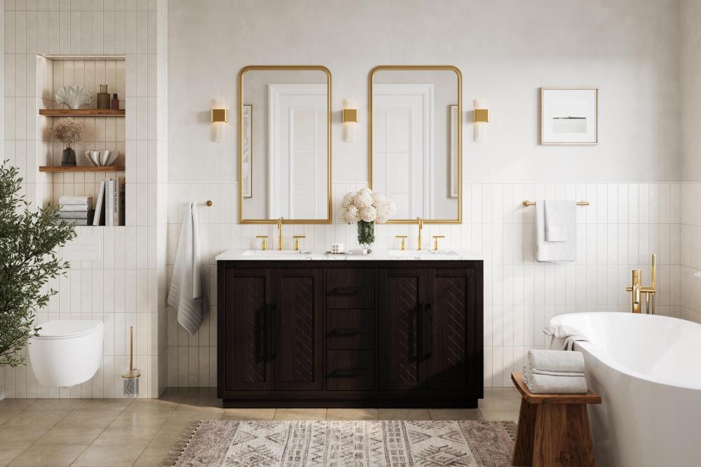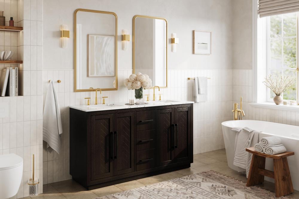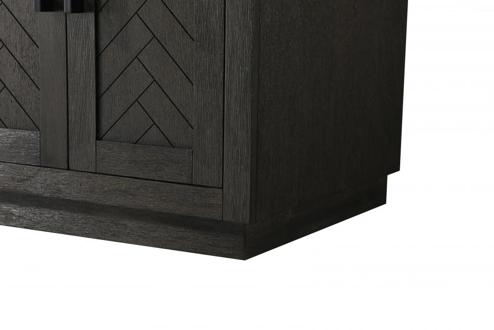 Each finish enhances the unique herringbone design on the Shaker-style door panels, adding a touch of craftsmanship and texture that elevates the overall design of the vanity.
