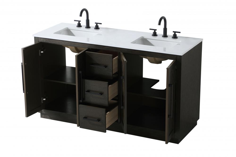 This transitional bathroom vanity comes in five elegant finishes to suit a variety of styles: Crisp White for a clean, timeless look, Sleek Grey for modern sophistication, Chocolate Oak (dark brown) for a rich.