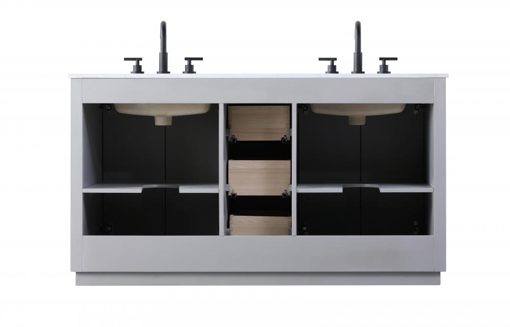 This transitional bathroom vanity comes in five elegant finishes to suit a variety of styles: Crisp White for a clean, timeless look, Sleek Grey for modern sophistication, Chocolate Oak (dark brown) for a rich.