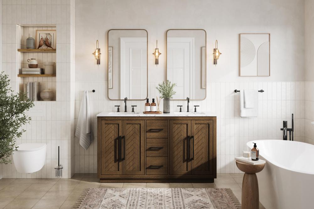 Luxurious feel, Honey Oak (medium brown) for a warm, natural touch, and Linen Oak (light brown) for an airy, organic aesthetic. These finishes ensure versatility, making it easy to complement any bathroom decor.