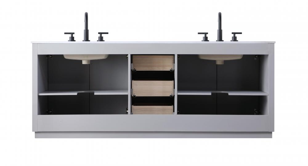The vanity is topped with a white engineered marble countertop featuring subtle, natural-looking veining that creates a luxurious yet low-maintenance surface. This countertop adds elegance while providing durability, making it ideal for everyday use.