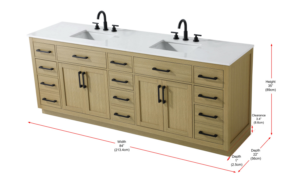 Vanity Cabinet 4Dr11Dw 84"W x 22"D x 35''H Honey Brown