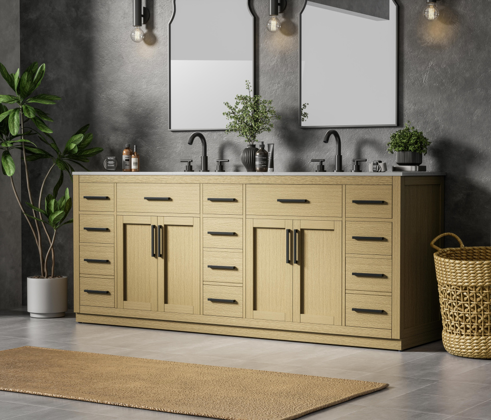 Spacious bottom deep drawers provide extra room for storing larger items like towels or cleaning supplies.
