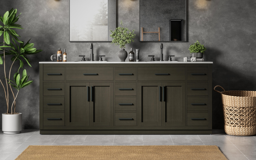 Perfectly suited for transitional and contemporary bathroom designs, this vanity seamlessly blends rustic and modern elements while being crafted from solid wood and MDF for exceptional durability and strength.
