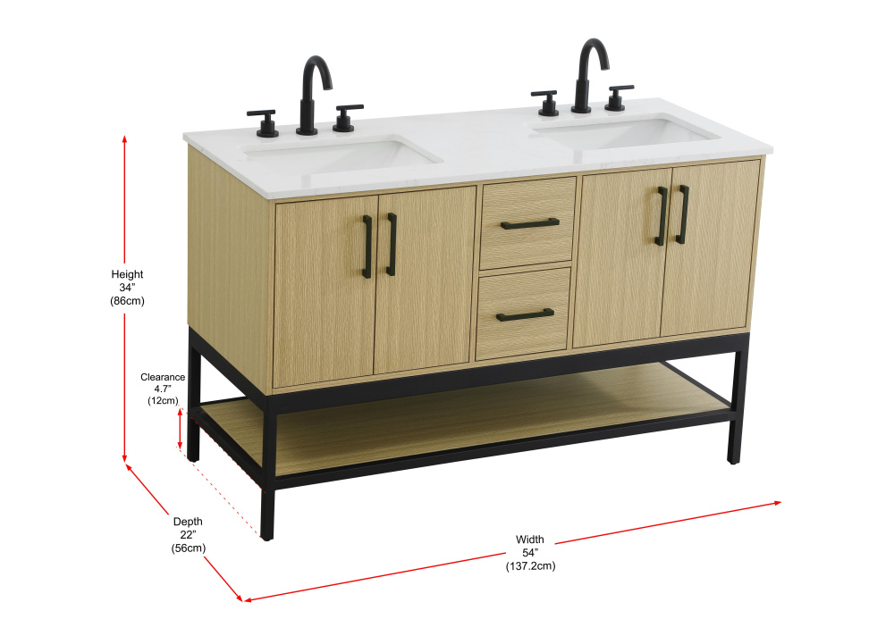 Elegant VF60754DMHB - Vanity Cabinet 4Dr2Dw 54"x22"x34" Honey Brown