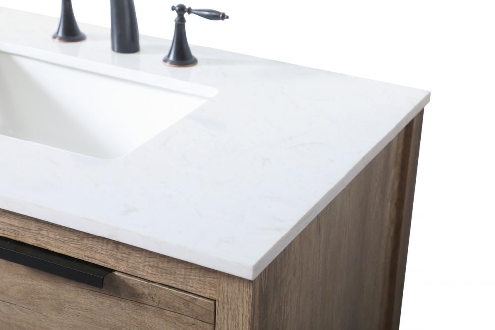 Elevate your bathroom effortlessly with our stylish vanity. Featuring an engineered marble top and chic straight edge cut, it brings a touch of modern elegance. The four soft-close drawers are adorned with sleek pulls, which offer both convenient storage and a contemporary aesthetic. Completing the ensemble, an undermount porcelain sink adds timeless charm. The vanity's open shelf at the bottom provides extra storage and a space to showcase decor. As a freestanding unit, this hassle-free solution requires no assembly. Customize your space effortlessly with this sophisticated option for instant bathroom elegance.