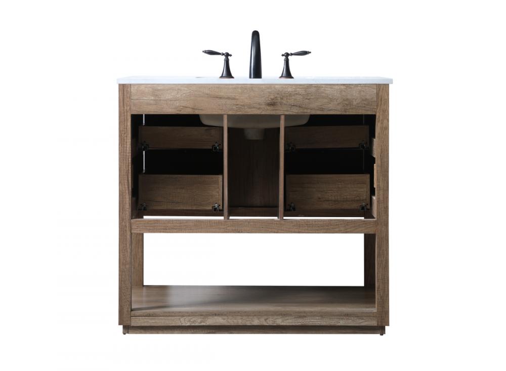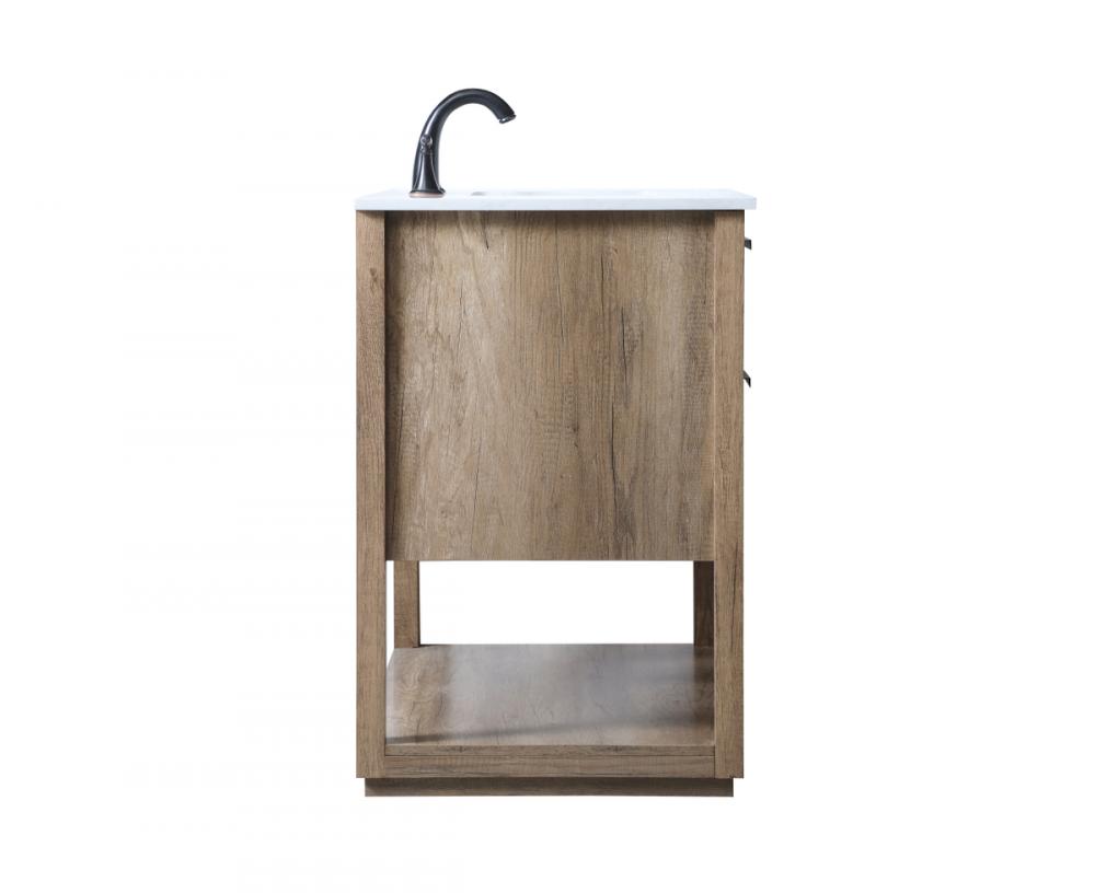 Featuring an open shelf at the bottom for extra storage, the vanity provides a convenient space to showcase decor or store essentials, adding functionality and style to your bathroom.