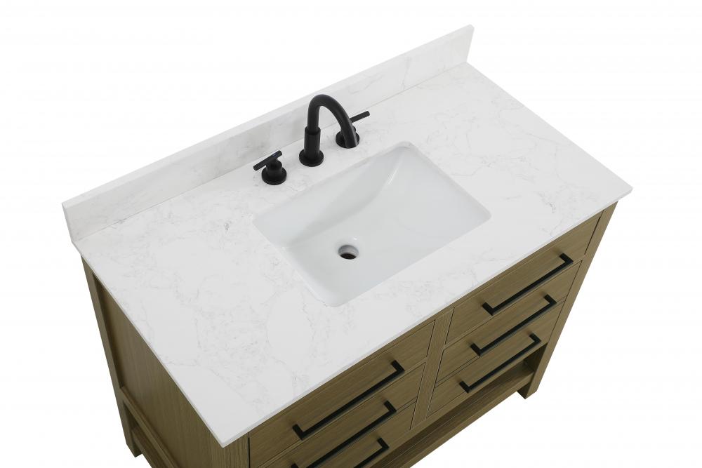 Elevate your bathroom design with this versatile and beautifully crafted bathroom vanity cabinet. The engineered marble top features striking veining, adding a luxurious focal point to your space. Built from premium solid wood and MDF, it ensures long-lasting durability and strength. The porcelain sink, complete with a concealed overflow, offers a seamless and refined finish. Available in four stunning finishes—Chestnut Brown, Honey Brown, Mocha Brown, and White—this vanity suits any interior style. Designed with convenience in mind, it features soft-closing drawers with modern handles and a tip-out drawer for easy access to small essentials, keeping your space tidy. The bottom deep drawer mimics the appearance of two separate drawers, providing ample storage for larger items, while the open shelf at the base offers additional storage space for towels or decor. Fully assembled for your convenience, it includes foot levelers for stability on any surface. For a complete look, pair it with a matching backsplash. UPC certified for quality assurance, this vanity is the perfect combination of functionality, style, and ease of use.