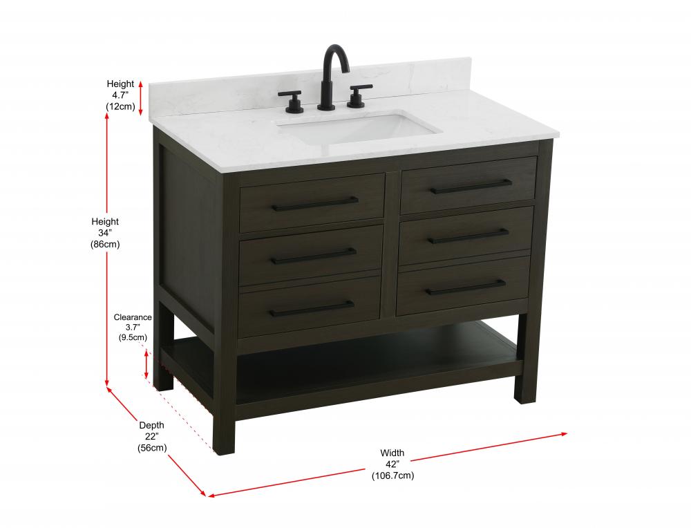 Vanity Cabinet 4DW 42"W x 22"D x 34"H Mocha Brownw/BS