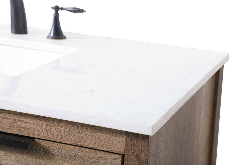 Elevate your bathroom effortlessly with our stylish vanity. Featuring an engineered marble top and chic straight edge cut, it brings a touch of modern elegance. The four soft-close drawers are adorned with sleek pulls, which offer both convenient storage and a contemporary aesthetic. Completing the ensemble, an undermount porcelain sink adds timeless charm. The vanity's open shelf at the bottom provides extra storage and a space to showcase decor. As a freestanding unit, this hassle-free solution requires no assembly. Customize your space effortlessly with this sophisticated option for instant bathroom elegance.