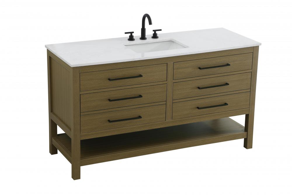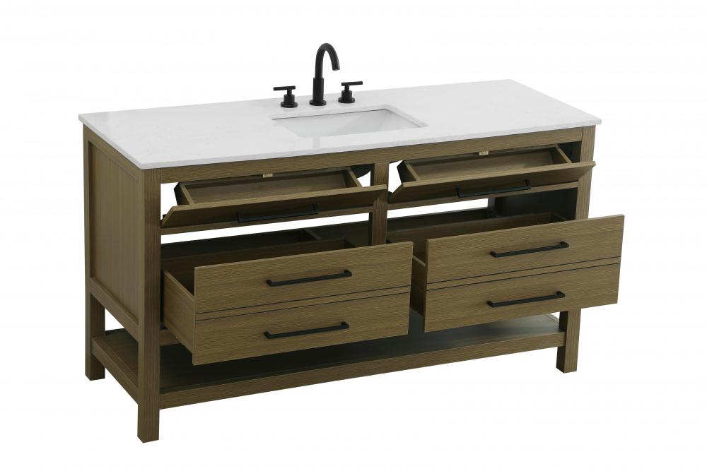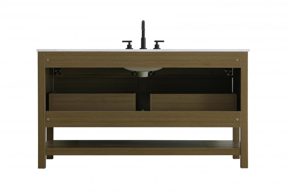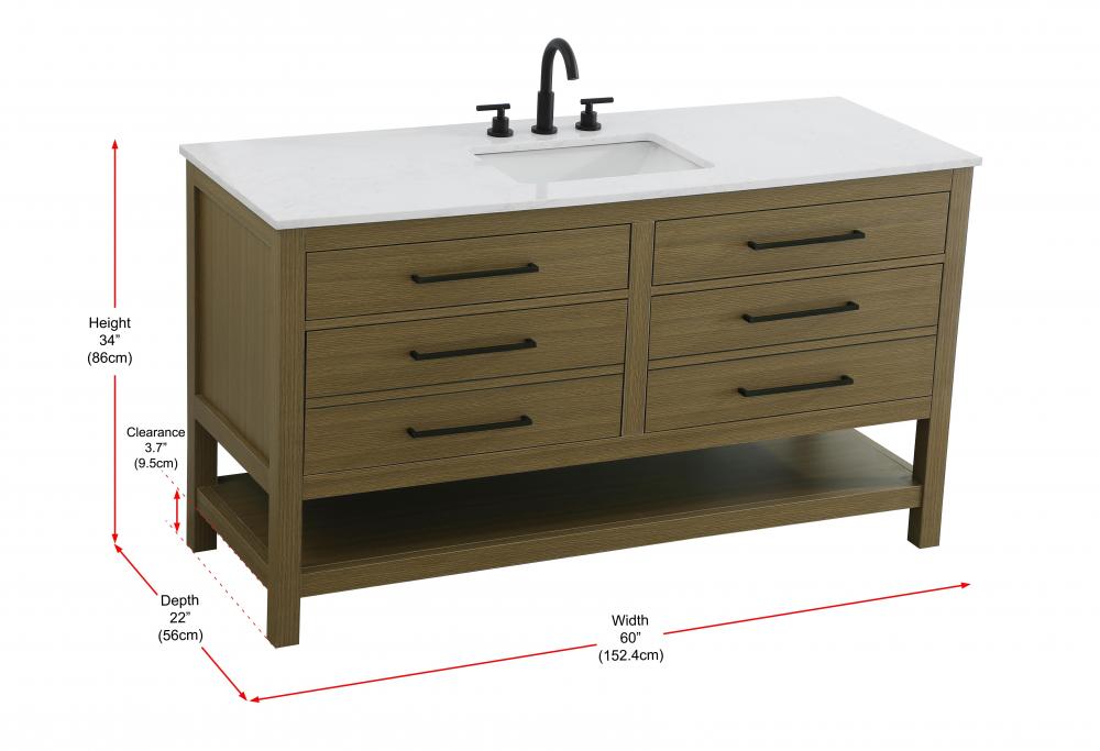 Elevate your bathroom design with this versatile and beautifully crafted bathroom vanity cabinet. The engineered marble top features striking veining, adding a luxurious focal point to your space. Built from premium solid wood and MDF, it ensures long-lasting durability and strength. The porcelain sink, complete with a concealed overflow, offers a seamless and refined finish.Available in four stunning finishes—Chestnut Brown, Honey Brown, Mocha Brown, and White—this vanity suits any interior style. Designed with convenience in mind, it features soft-closing drawers with modern handles and a tip-out drawer for easy access to small essentials, keeping your space tidy. The bottom deep drawer mimics the appearance of two separate drawers, providing ample storage for larger items, while the open shelf at the base offers additional storage space for towels or decor.Fully assembled for your convenience, it includes foot levelers for stability on any surface. For a complete look, pair it with an optional matching backsplash, sold separately. UPC certified for quality assurance, this vanity is the perfect combination of functionality, style, and ease of use.