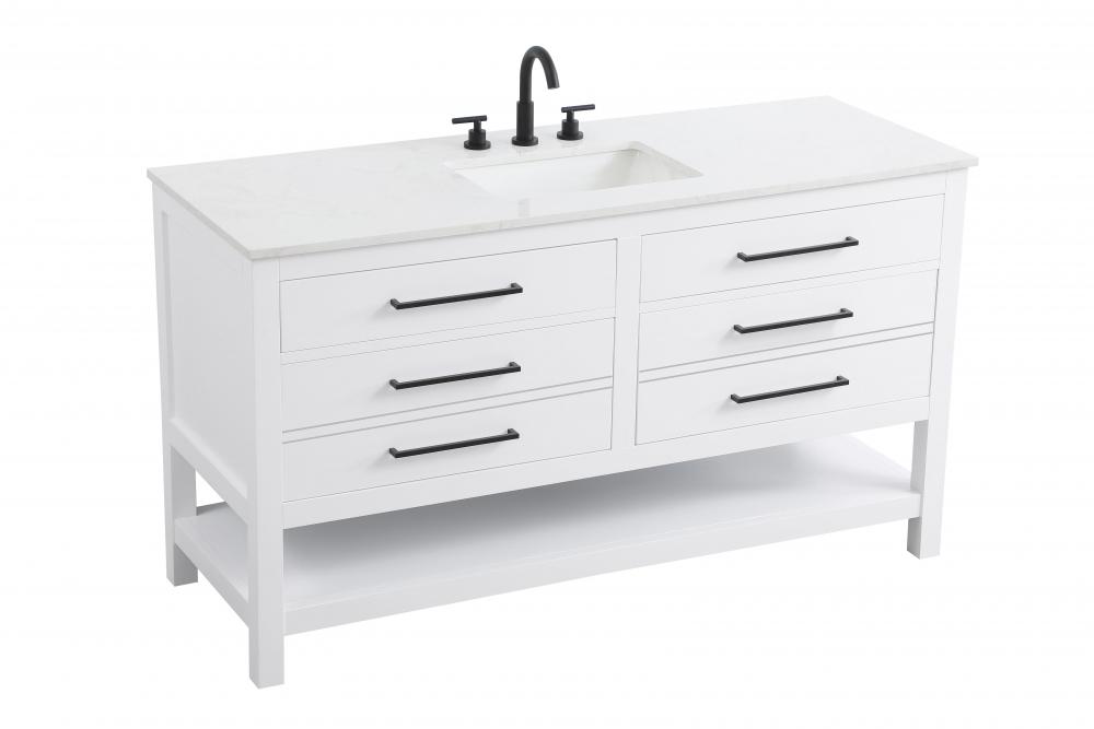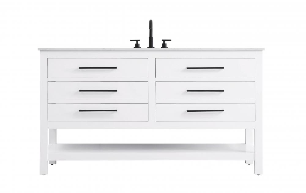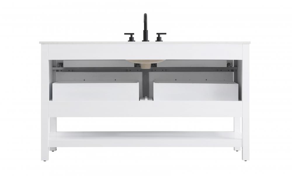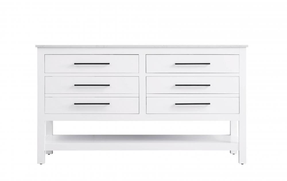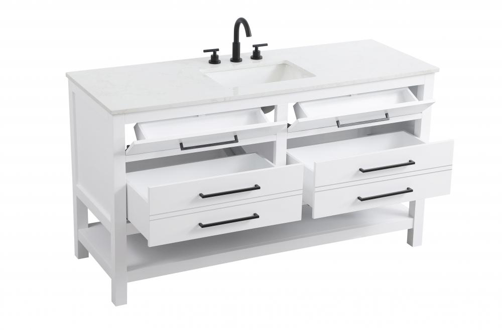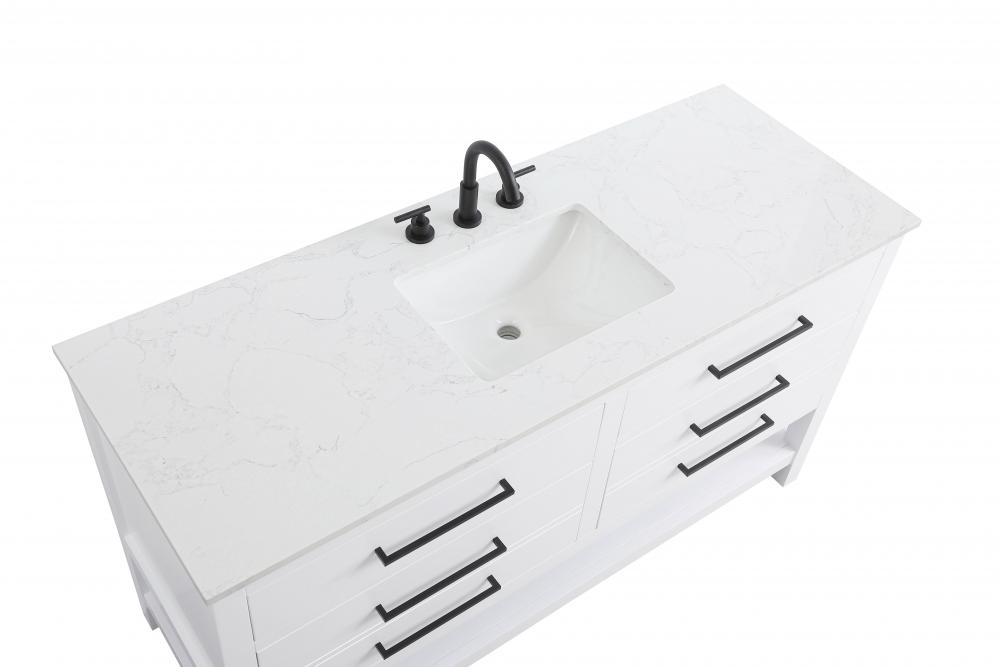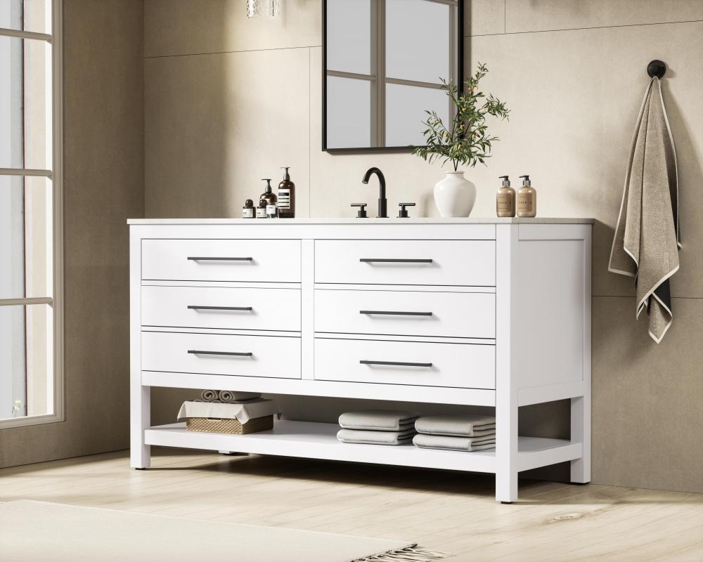 Elevate your bathroom design with this versatile and beautifully crafted bathroom vanity cabinet. The engineered marble top features striking veining, adding a luxurious focal point to your space. Built from premium solid wood and MDF, it ensures long-lasting durability and strength. The porcelain sink, complete with a concealed overflow, offers a seamless and refined finish.Available in four stunning finishes—Chestnut Brown, Honey Brown, Mocha Brown, and White—this vanity suits any interior style. Designed with convenience in mind, it features soft-closing drawers with modern handles and a tip-out drawer for easy access to small essentials, keeping your space tidy. The bottom deep drawer mimics the appearance of two separate drawers, providing ample storage for larger items, while the open shelf at the base offers additional storage space for towels or decor.Fully assembled for your convenience, it includes foot levelers for stability on any surface. For a complete look, pair it with an optional matching backsplash, sold separately. UPC certified for quality assurance, this vanity is the perfect combination of functionality, style, and ease of use.