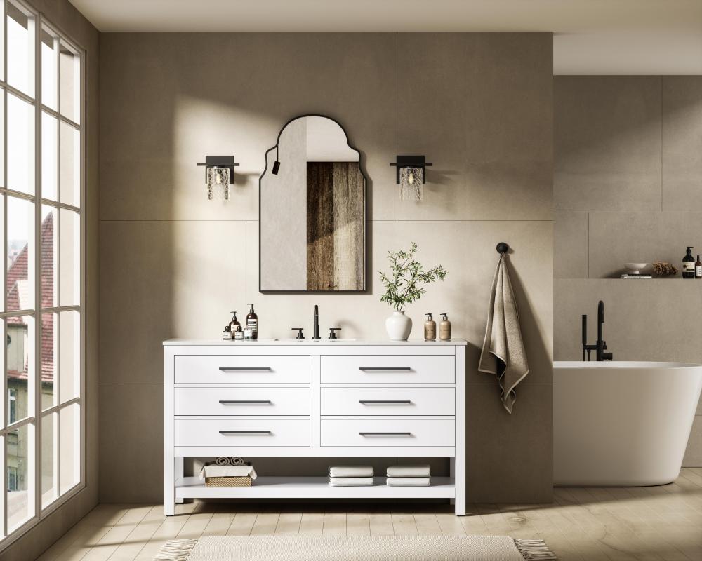A luxurious engineered marble countertop with beautiful veining brings timeless elegance to any bathroom.