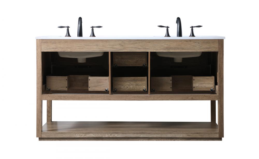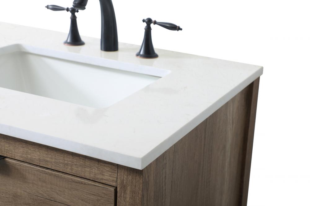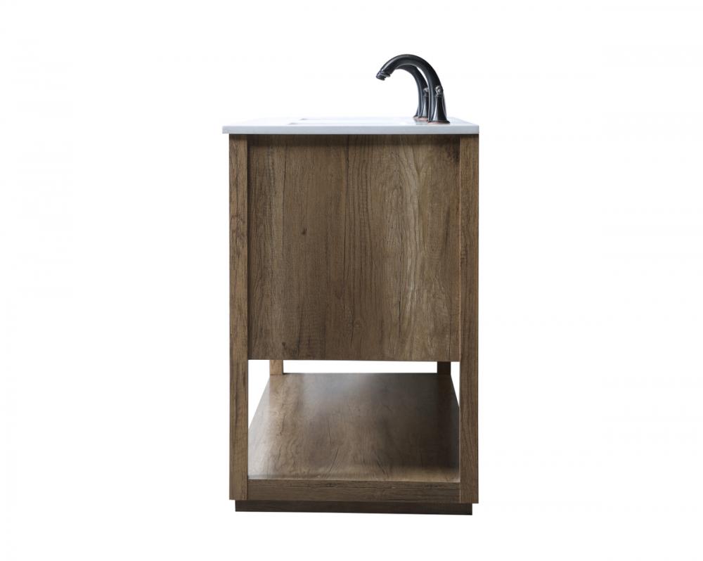 Featuring an open shelf at the bottom for extra storage, the vanity provides a convenient space to showcase decor or store essentials, adding functionality and style to your bathroom.