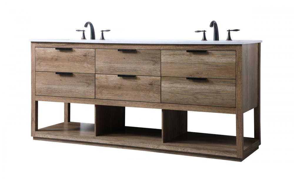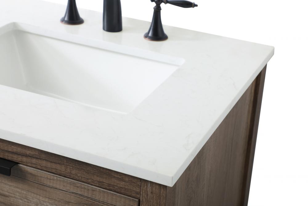 Featuring an open shelf at the bottom for extra storage, the vanity provides a convenient space to showcase decor or store essentials, adding functionality and style to your bathroom.