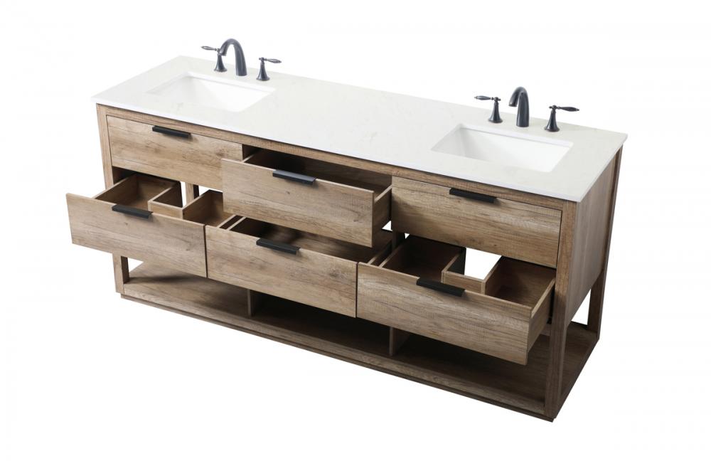 Elevate your bathroom effortlessly with our stylish vanity. Featuring an engineered marble top, and chic straight edge cut, it brings a one-of-a-kind touch of modern elegance. The four functional soft-close drawers, adorned with sleek pulls, offer both convenient storage and a contemporary aesthetic, while two faux top drawers add an extra design flair. Completing the ensemble, two undermount porcelain sinks add timeless charm. The vanity's open shelf at the bottom provides extra storage and a space to showcase decor. As a freestanding unit, this hassle-free solution requires no assembly. Customize your space effortlessly with this sophisticated option for instant bathroom elegance.