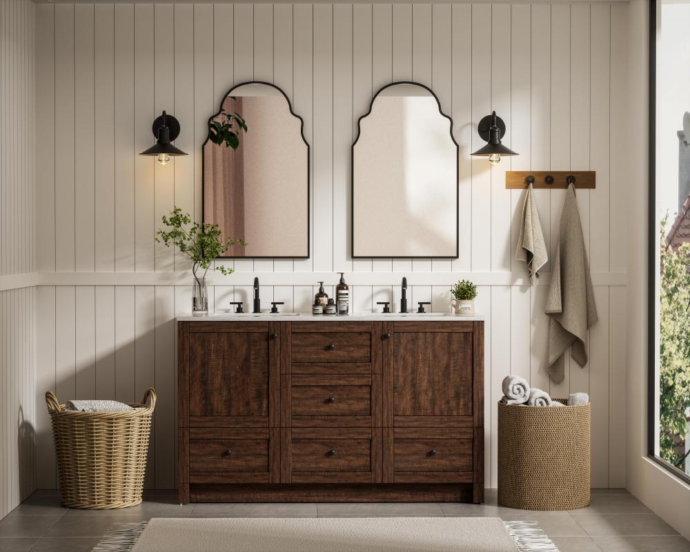 Experience the epitome of convenience with a freestanding vanity featuring an open back panel, making plumbing installation a breeze.