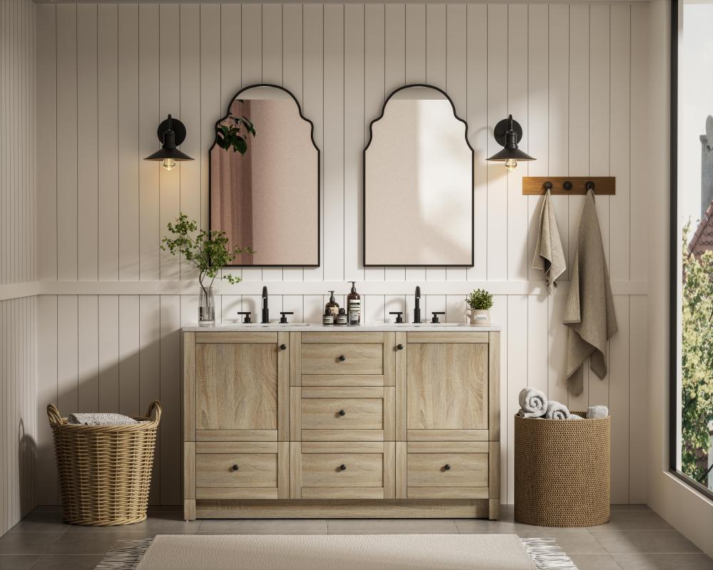 Experience the epitome of convenience with a freestanding vanity featuring an open back panel, making plumbing installation a breeze.