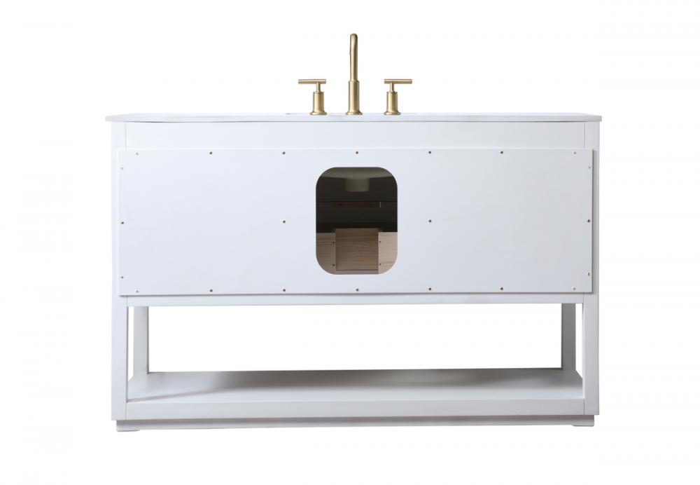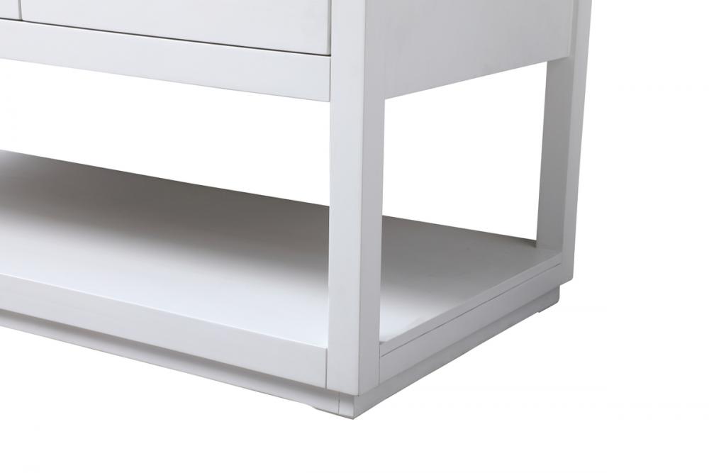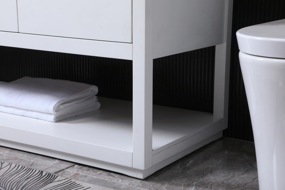 Featuring an open shelf at the bottom for extra storage, the vanity provides a convenient space to showcase decor or store essentials, adding functionality and style to your bathroom.