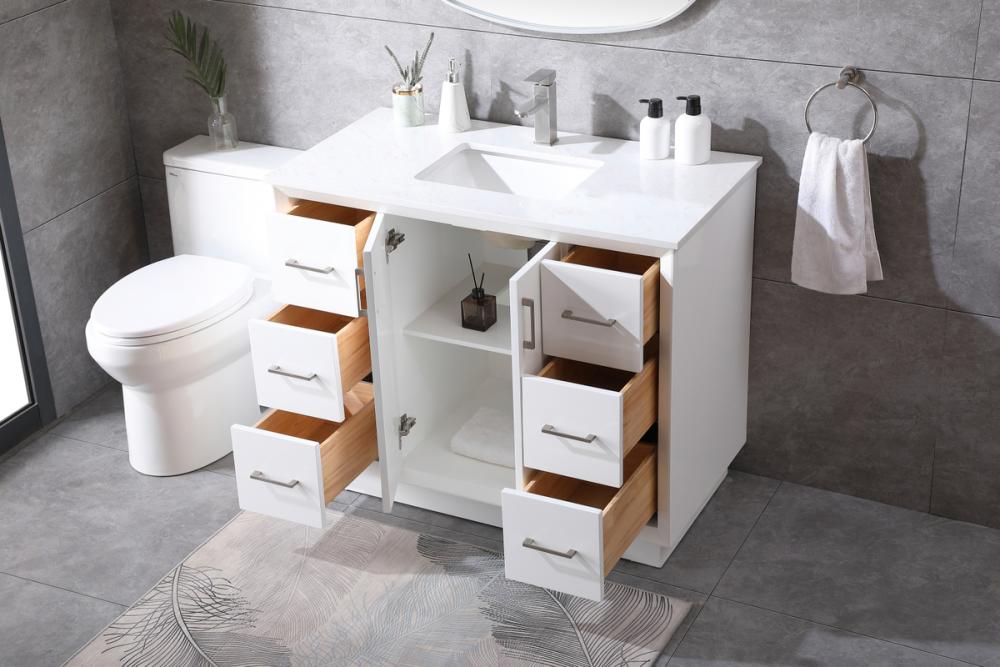 With an abundance of storage space, this vanity allows you to effortlessly organize your essentials, keeping your bathroom clutter-free.
