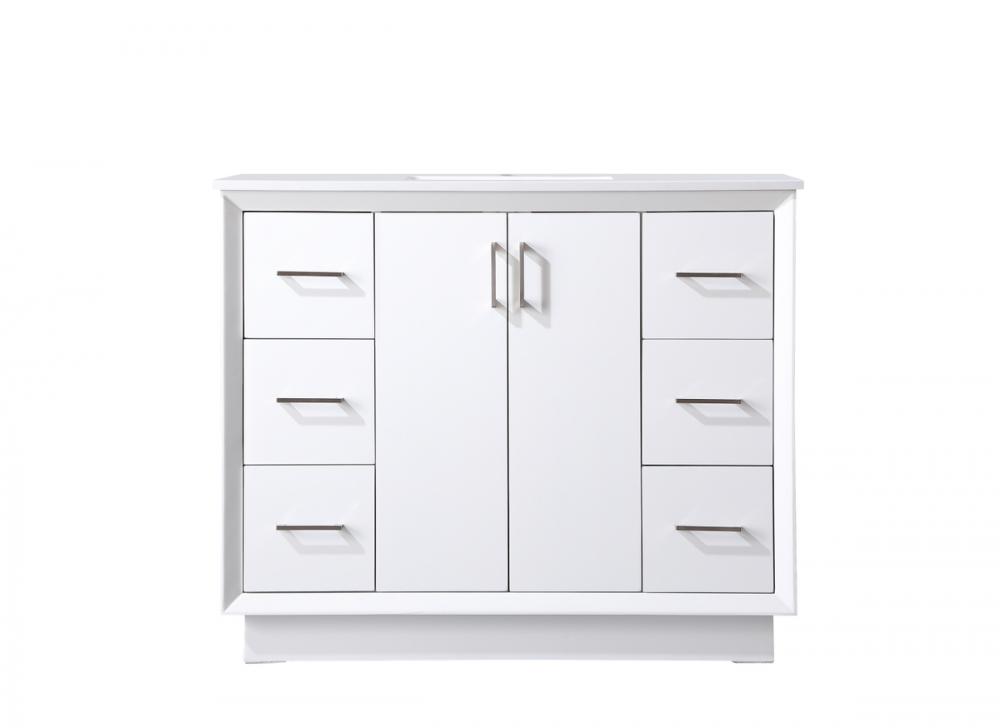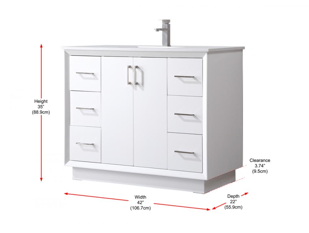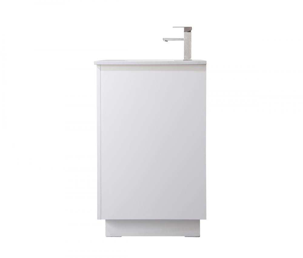 Step into a realm of modern luxury with our freestanding bathroom vanity, featuring a sleek and contemporary boxy design that sets new standards for aesthetics. The engineered marble countertop, with its crisp 0.75-inch straight edge, not only introduces sophistication but also ensures enduring durability. Convenience takes center stage with the undermount porcelain sink, measuring 15.35 inches long, 11 inches wide, and 7 inches deep, complemented by a single predrilled faucet hole for seamless installation. Experience the art of organization through soft-closing drawers and doors adorned with high-quality bar pulls, showcasing meticulous craftsmanship in the precision of butt joint drawers. The vanity, crafted from resilient MDF material, combines elegance with durability, supported by solid wood legs that provide stability and a touch of natural warmth. Elevate your bathroom with this distinctive piece, where the fusion of form and function creates a harmonious dance of modern sophistication, redefining your daily routine with a statement in style and practicality.