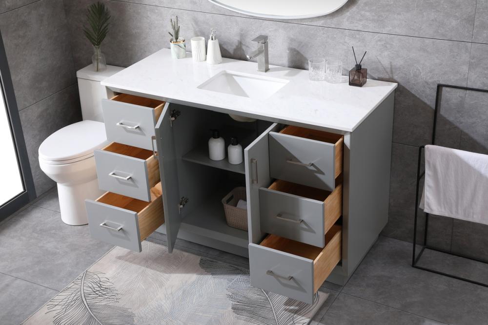 With an abundance of storage space, this vanity allows you to effortlessly organize your essentials, keeping your bathroom clutter-free.