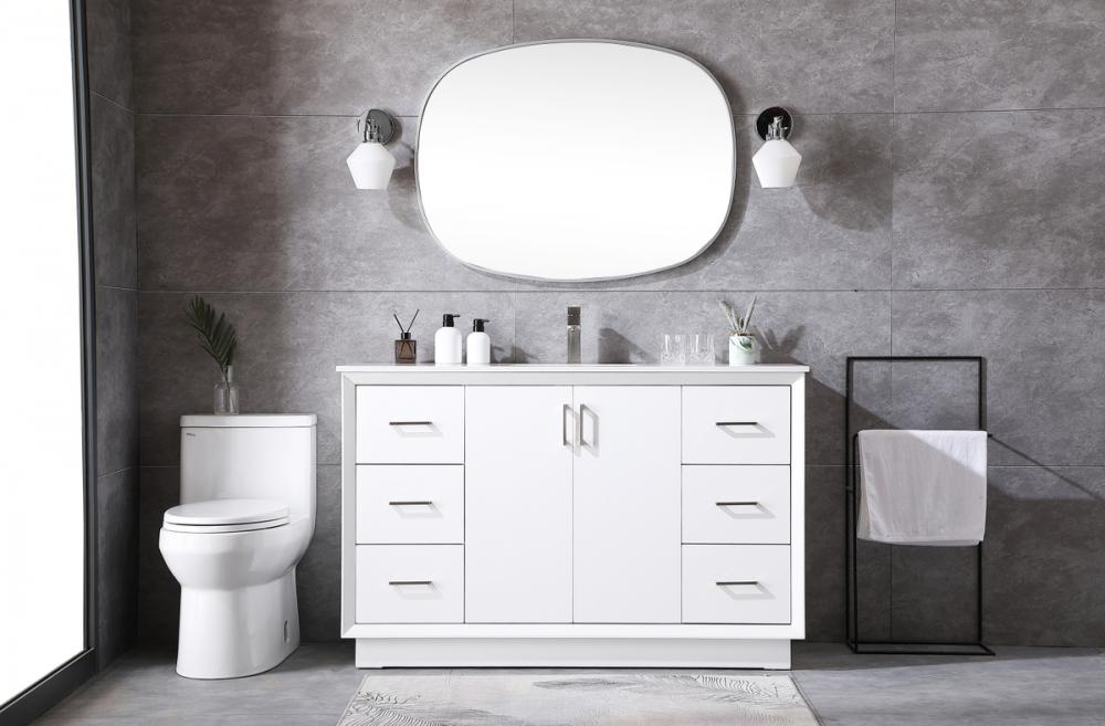 Vanity frame and base are crafted from durable solid wood, this vanity promises longevity and resilience, ensuring it stands the test of time while maintaining its modern allure.