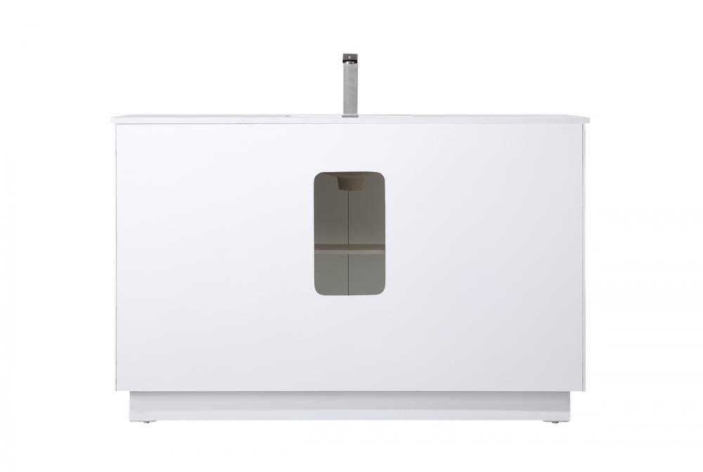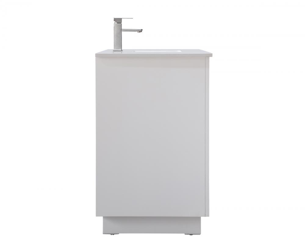 Step into a realm of modern luxury with our freestanding bathroom vanity, featuring a sleek and contemporary boxy design that sets new standards for aesthetics. The engineered marble countertop, with its crisp 0.75-inch straight edge, not only introduces sophistication but also ensures enduring durability. Convenience takes center stage with the undermount porcelain sink, measuring 15.35 inches long, 11 inches wide, and 7 inches deep, complemented by a single predrilled faucet hole for seamless installation. Experience the art of organization through soft-closing drawers and doors adorned with high-quality bar pulls, showcasing meticulous craftsmanship in the precision of butt joint drawers. The vanity, crafted from resilient MDF material, combines elegance with durability, supported by solid wood legs that provide stability and a touch of natural warmth. Elevate your bathroom with this distinctive piece, where the fusion of form and function creates a harmonious dance of modern sophistication, redefining your daily routine with a statement in style and practicality.