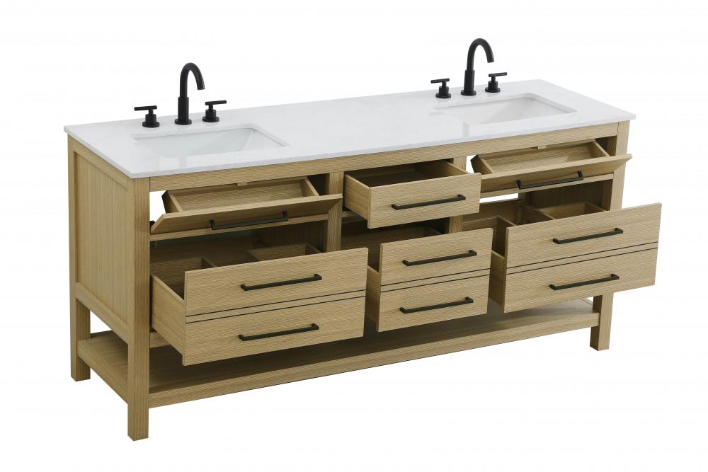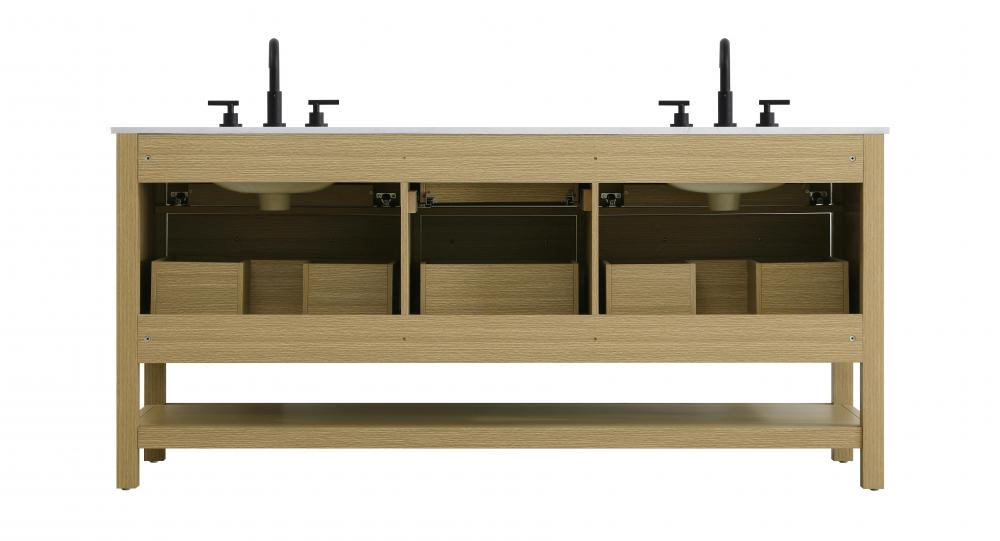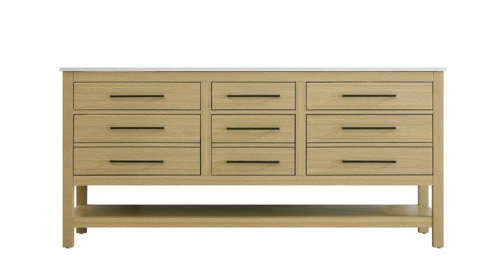 Elevate your bathroom design with this versatile and beautifully crafted bathroom vanity cabinet. The engineered marble top features striking veining, adding a luxurious focal point to your space. Built from premium solid wood and MDF, it ensures long-lasting durability and strength. The porcelain sink, complete with a concealed overflow, offers a seamless and refined finish.Available in four stunning finishes—Chestnut Brown, Honey Brown, Mocha Brown, and White—this vanity suits any interior style. Designed with convenience in mind, it features soft-closing drawers with modern handles and a tip-out drawer for easy access to small essentials, keeping your space tidy. The bottom deep drawer mimics the appearance of two separate drawers, providing ample storage for larger items, while the open shelf at the base offers additional storage space for towels or decor.Fully assembled for your convenience, it includes foot levelers for stability on any surface. For a complete look, pair it with an optional matching backsplash, sold separately. UPC certified for quality assurance, this vanity is the perfect combination of functionality, style, and ease of use.