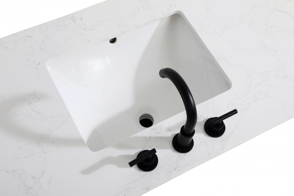 A luxurious engineered marble countertop with beautiful veining brings timeless elegance to any bathroom.