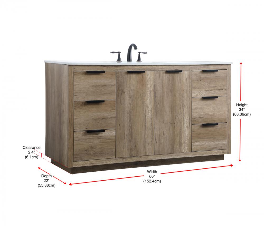 Spanning 60 inches, our vanity exudes sophistication, offering ample space and elegant design without compromising on style or functionality.