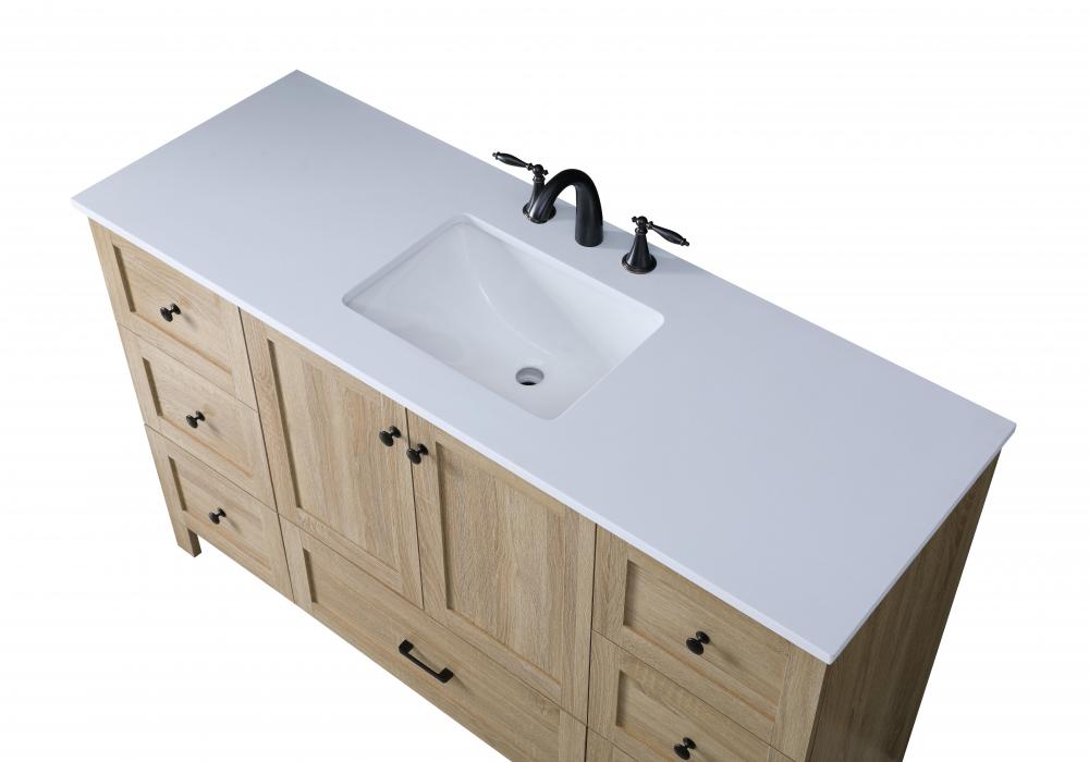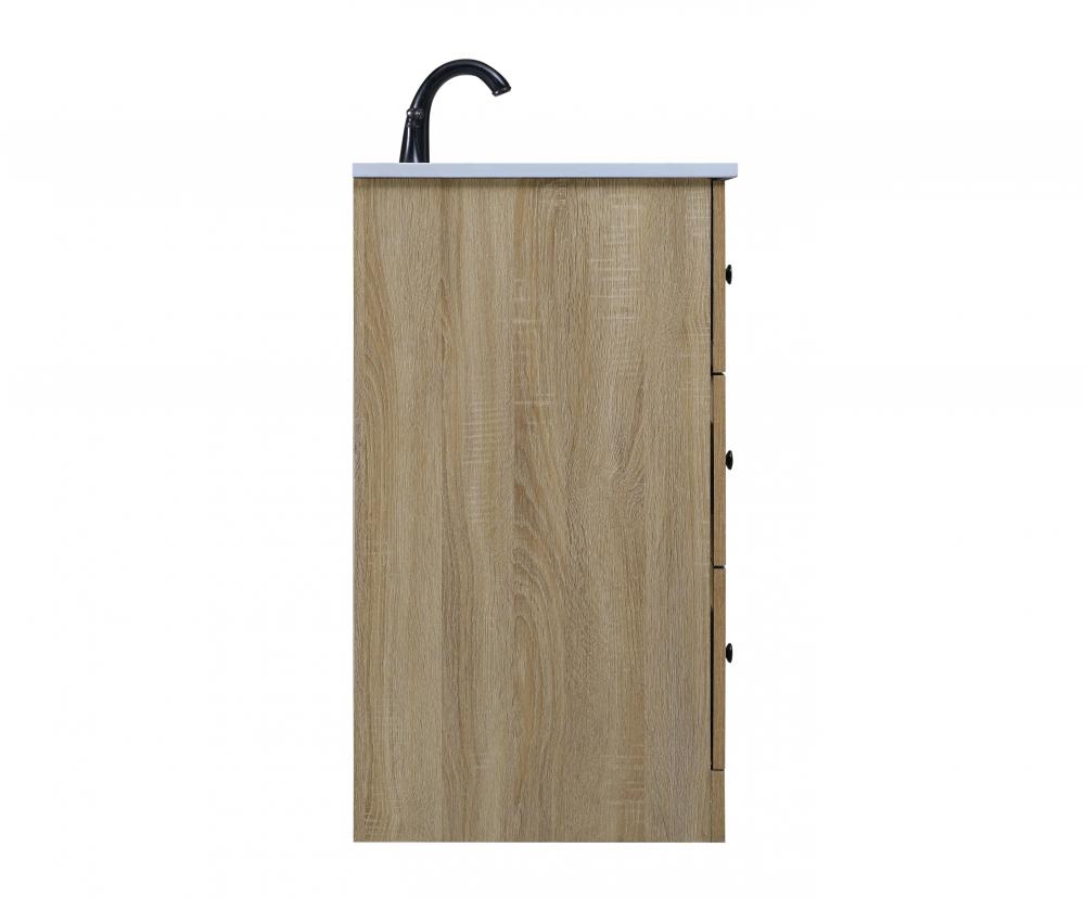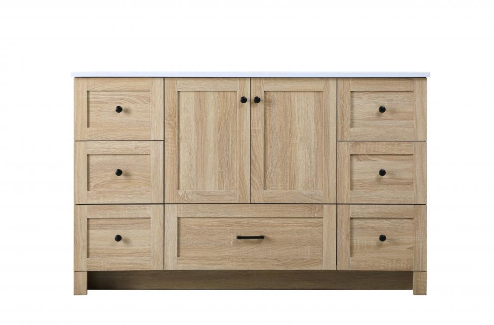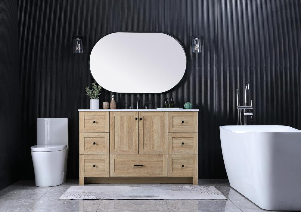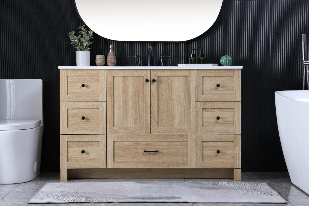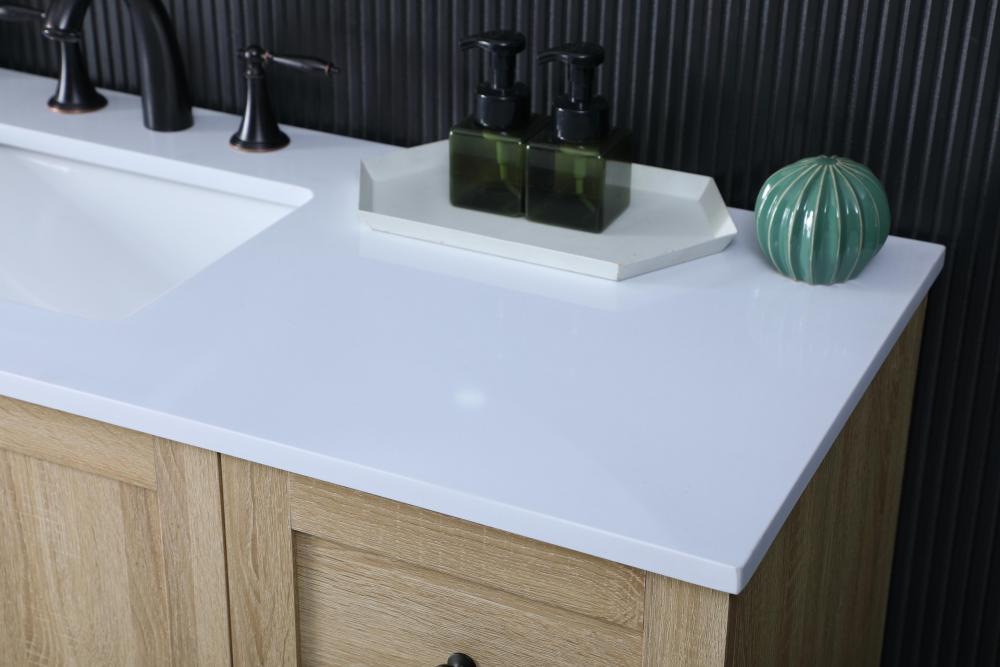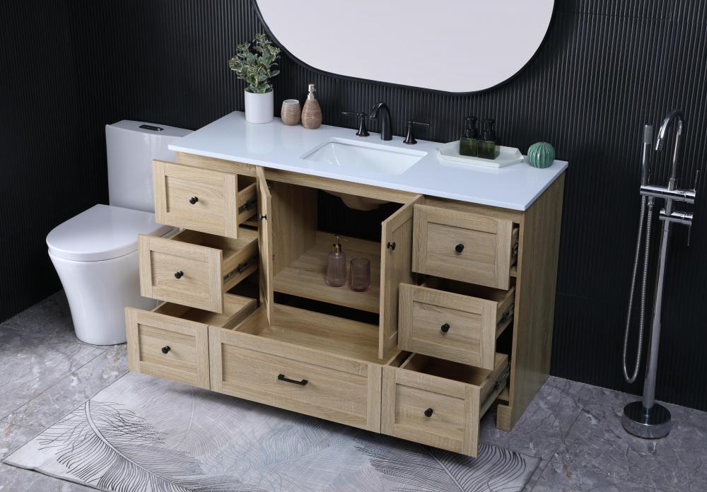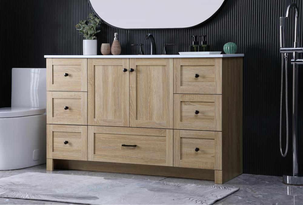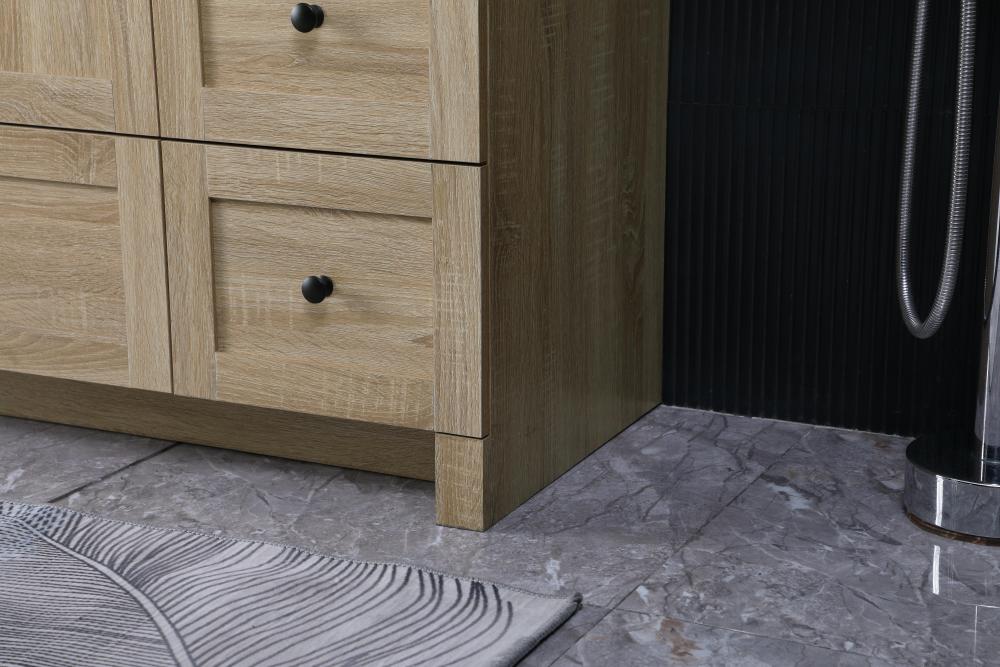 Revel in the beauty of a vanity that mimics the charm of real wood without the maintenance, boasting a faux wood look that adds a touch of natural warmth and rustic sophistication to your bathroom.