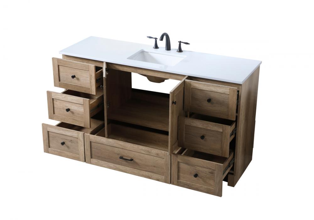 Elevate your bathroom with our sophisticated vanity featuring an engineered marble top in timeless ivory white. Designed for seamless elegance, it comes equipped with an undermount porcelain sink. Organizational bliss awaits with seven drawers and a cabinet, all boasting smooth soft-close glides and hinges. Completing the picture of refinement, our vanity is tastefully adorned with sleek black hardware. Transform your space with this marriage of style and functionality.