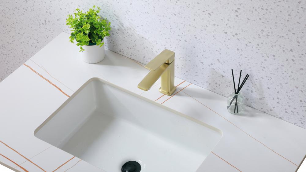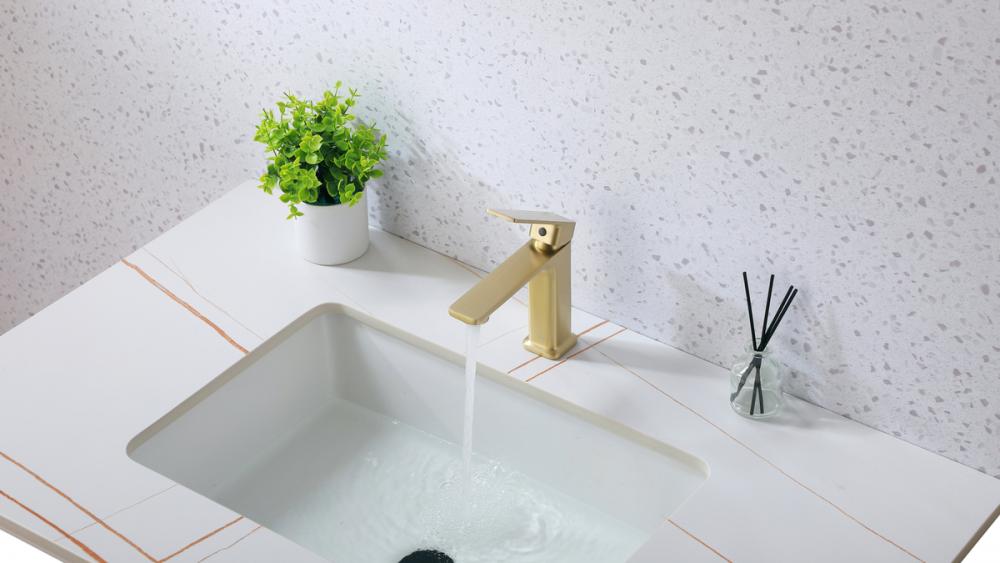 Our vanity faucet, featuring a single-handle design, ensures effortless water control for your convenience. Crafted from durable brass, this faucet not only resists corrosion but also brings a touch of contemporary sophistication to your vanity while promising long-lasting durability. With supply lines included, installation becomes a hassle-free endeavor, saving your valuable time. The handle's clear indicators for hot and cold temperatures make selecting your desired water temperature a simple and confident task. Standing tall, this compact faucet design is versatile and effortlessly complements various vanity styles. Its single-hole installation design ensures an easy setup without the need for complex installations or extra holes. Offering a maximum flow rate of 1.5 gallons per minute at 60 PSI, this faucet delivers a gentle yet efficient water flow, aiding in water conservation and reduced utility bills. Equipped with a single self-contained ceramic disc valve, this faucet ensures lasting reliability and precise volume and temperature control, ensuring a dependable performance for years to come.