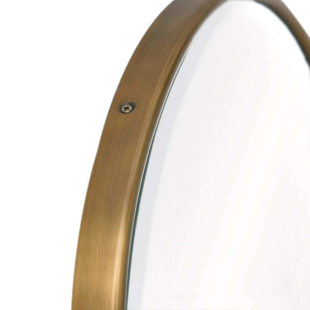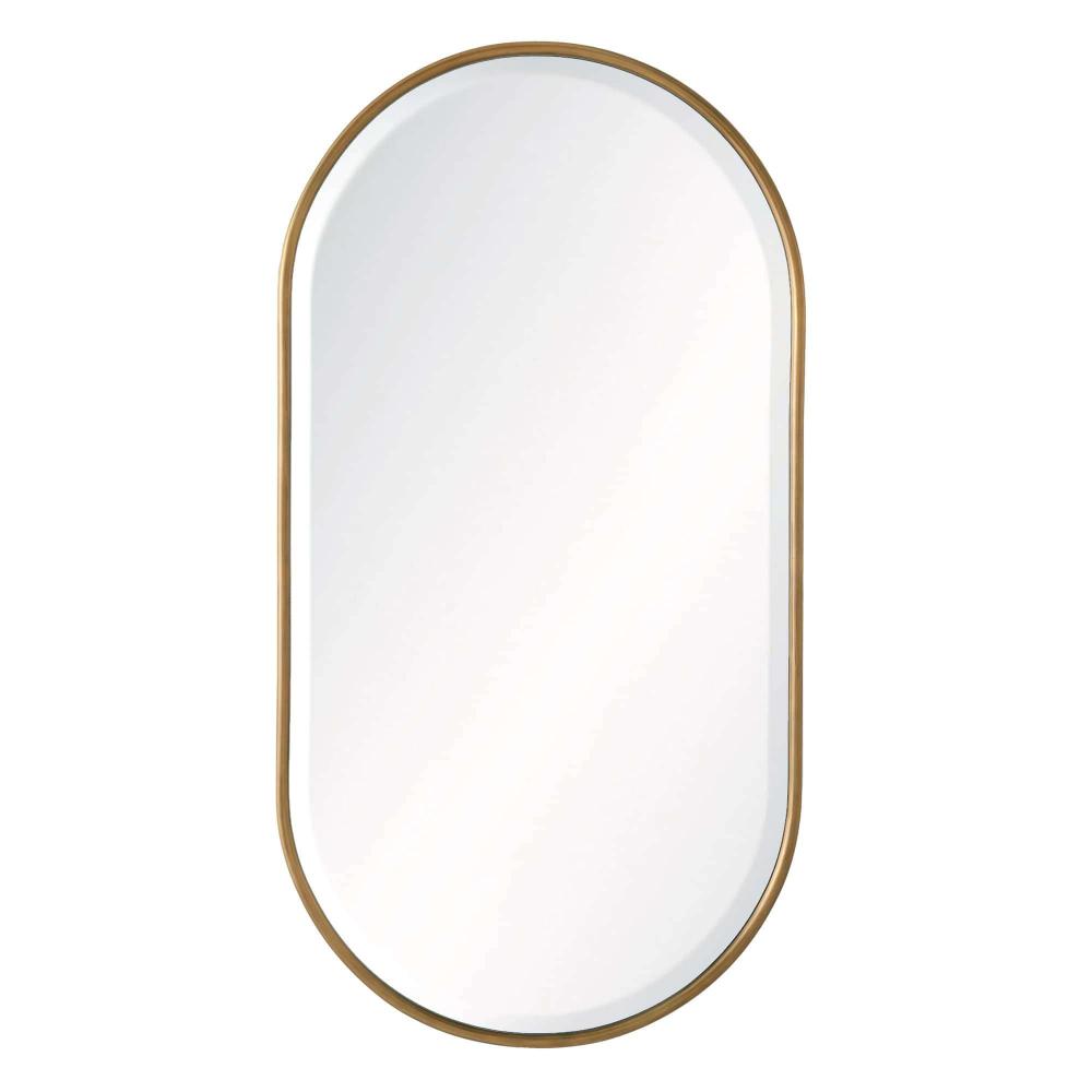 RENDERED IN A CLASSIC CAPSULE SHAPE, THE VAQUERO MIRROR IS ENDOWED WITH A VINTAGE SENSIBILITY. CRAFTED IN ANTIQUE BRASS WITH A BEVELED MIRROR, THE CHIC ACCENT PIECE IS STRIKING ALONE OR AS A PAIR OVER A VANITY. THE MIRROR CAN BE HUNG VERTICALLY OR HORIZONTALLY AND IS FITTED WITH A SECURITY CLEAT.