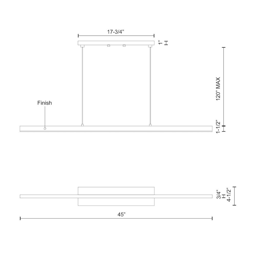Slim state-of-the-art linear LED pendant brings sophistication to any room it is installed in. Available in brushed nickel, espresso and white metal finishes with full length linear frosted acrylic diffuser which when lit diffuses the light evenly below. Adjustable wire length to a maximum of 120" and is provided with our powerful 120V AC LED technology, 30W, fully dimmable. Available in two different sizes and wall sconces, see series for more details.